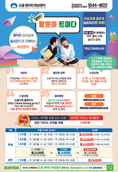수강신청은 ‘도봉 원어민 화상영어 포털사이트에서 한다.