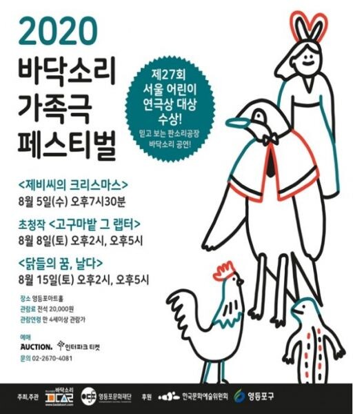 바닥소리 가족극 페스티벌은 제27회 서울어린이 연극상 대상, 관객이 뽑은 최고인기상, 남우주연상 총 3관왕 수상작인 ‘제비씨의 크리스마스’를 포함해 총 3개의 공연으로 구성됐다.