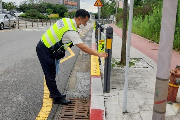 주정차금지 포인트 마크 알림판은 학교 인근 불법 주정차를 원천 차단해 어린이들의 등하굣길 등 안전한 보행환경 조성을 위해 마련됐다.