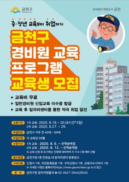 [무한뉴스] 금천구가 조기은퇴자, 실직자 등 지역 중·장년층의 취업을 지원하기 위해 ‘경비원 교육 프로그램’을 운영한다.