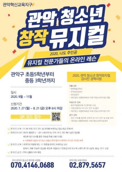 [무한뉴스] 관악구가 관악혁신교육지구 청소년 창작 뮤지컬 ‘나도 주인공’ 예술교육 참여자를 모집한다.