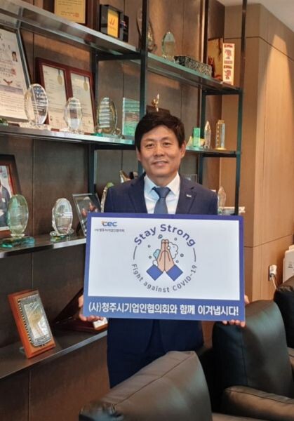 [무한뉴스] 청주시기업인협의회 김선겸 회장은 4일 정원커머스에서 코로나19 극복과 조기 종식을 기원하는 마음을 담아 “스테이 스트롱캠페인”에 동참했다.
