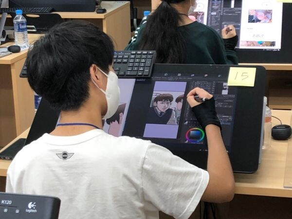 첫날 진행된 ‘웹툰’ 과정에서는 원하는 줄거리를 작성한 뒤 10~15컷의 상황에 따른 콘티를 작성해 보았으며 실제 웹툰 작가가 사용하는 ‘와콤신티크’ 장비를 통해 그림콘티를 직접 만들어 보는 프로그램을 진행했다.