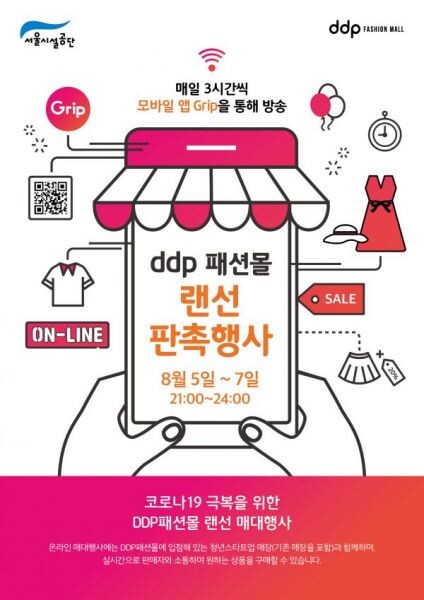 원래 DDP패션몰은 여성의류 도매상가로 소비자와 직접 거래하지 않았으나, 코로나 19로 인한 ‘20년 신상품 판매 부진을 극복하고자 모바일 라이브쇼핑기업인 GRIP과 협업을 통해 실시간 생방송으로 상품을 소개하고 판매하는 ‘DDP패션몰 랜선 판촉행사’를 진행한다.