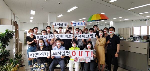 [무한뉴스] 작년 9월에 발생해 현재까지 끝나지 않고 있는 아프리카돼지열병.장기화 되고 있는 코로나19, 긴 장맛비와 집중호우 피해. 모두가 힘든시기에 청주시 축산과 직원들이 희망의 응원메시지를 보냈다.
