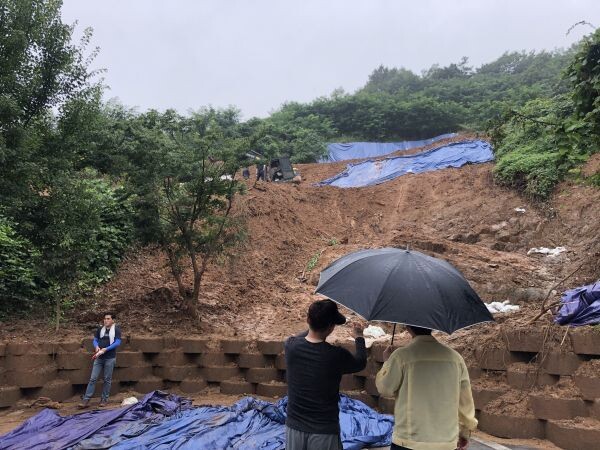 이곳은 호두나무 식재를 위한 산지일시사용신고 이후 산지복구 준공이 된 곳이나 이번 집중호우로 인해 토사가 다량 유실되어 인근 교회와 도로 빌라 등으로 쓸려 내려와 산림관리과에서 응급복구 조치를 한 상태로 추가 피해가 우려되고 있다.