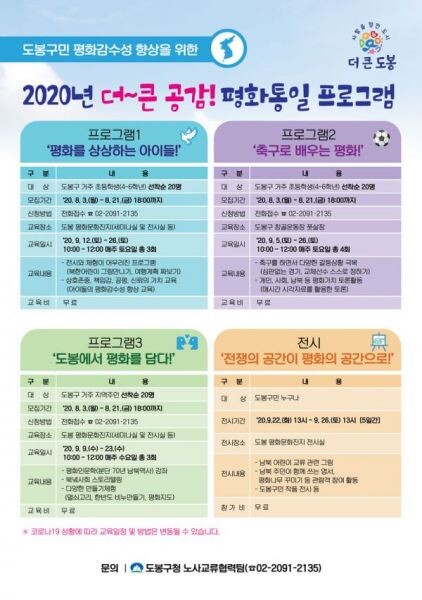 [무한뉴스]도봉구는 오는 9월 구민을 대상으로 다양한 평화·통일교육 프로그램을 운영한다.