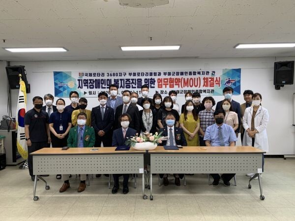 [무한뉴스] 부여군장애인종합복지관과 국제로타리3680지구 부여로타리클럽은 상호 협력을 통해 장애인복지 증진에 앞장서고자 지난 5일 업무협약을 체결했다.