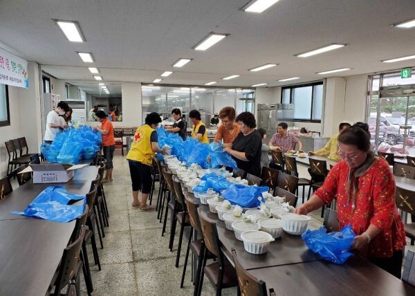 [무한뉴스] 대한적십자봉사회 예산지구 예산읍 신례원단위 봉사회와 예산읍지역사회보장협의체가 7일 저소득 독거어르신 120가구를 대상으로 손수 만든 여름철 건강 보양식인 삼계탕과 밑반찬을 전달했다.