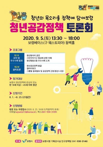 [무한뉴스] 보령시는 오는 25일까지 청년공감정책 토론회에 참가할 청년들을 모집한다고 밝혔다.