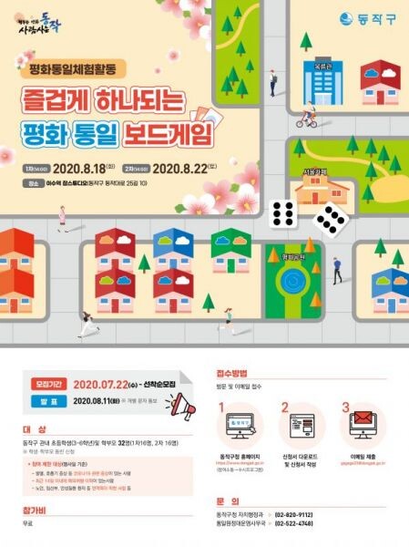 [무한뉴스] 동작구가 제75주년 광복절을 맞이해 통일과 나라사랑에 대한 마음을 함양할 수 있는 ‘즐겁게 하나되는 평화·통일 보드게임’ 프로그램을 추진한다고 10일 밝혔다.