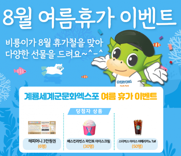 [무한뉴스] 2021계룡세계군문화엑스포조직위원회는 8월 여름 휴가 기간을 맞아 8월 10일부터 20일까지 11일간, 엑스포 공식 SNS를 통한 온라인 이벤트를 진행한다고 밝혔다.
