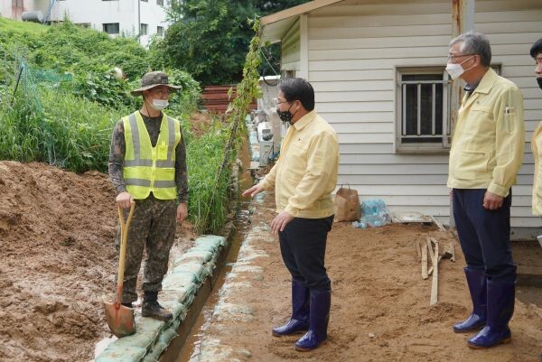 [무한뉴스] 오세현 아산시장은 8월 10일 송악면 등지에서 203특공여단과 32사단 아산대대 장병이 투입된 수해복구 현장을 찾아 특별한 감사의 인사를 전했다.