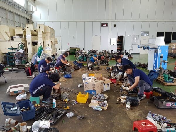 오송, 옥산, 오창 등 집중호우로 피해를 입은 지역의 양수기 약 150대를 농심관의 농업기계전담수리센터에서 집중 수리하고 있다.