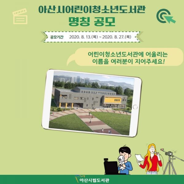 [무한뉴스] 아산시가 오는 13일부터 27일까지 아산시어린이청소년도서관 명칭을 공모한다.