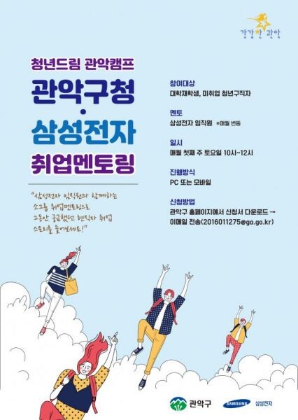 다음달 5일 첫 취업 멘토링을 앞둔 ‘청년드림 관악캠프’는 코로나19 확산 방지를 위해 온라인으로 진행될 예정이며 코로나19로 인해 프로그램 운영시기가 늦춰짐에 따라 향후 수요에 맞춰 삼성전자와 협력해 멘토링 횟수를 늘릴 계획이라고 전했다.