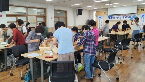 자살예방, 근골격계 질환 예방 및 미세먼지 저감 실천 교육, 목공·생활원예·도자기 등 생활 공예 실습으로 교육이 구성됐다.