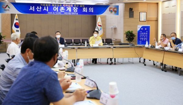 [무한뉴스]서산시가 12일 시청 대회의실에서 관내 어촌계장, 해양환경공단 등 30여명이 참석한 가운데 ‘서산시 어촌계장 회의’를 개최했다.