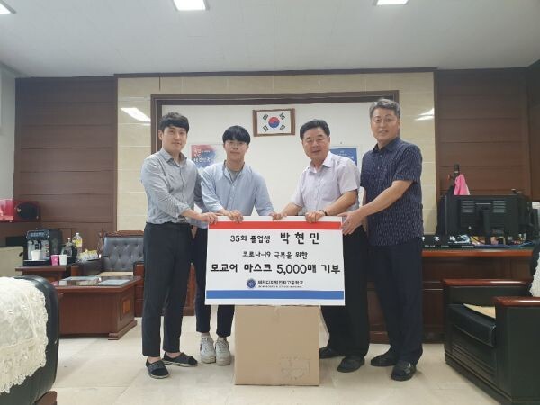 박현민 동문은 “고교 재학 중 학교로부터 받은 고마움을 되돌려주고 어려운 시기에 모교에 조금이나마 도움이 되기 위해 마스크를 기부했다”고 밝혔다.
