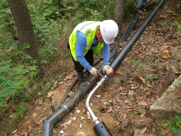 한편 고지대 사찰에 수돗물을 공급하는 공사는 도심에서의 수도관 공사와는 그 환경이 매우 다르다.