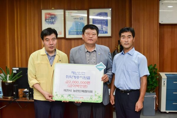 [무한뉴스] 제천시농민단체협의회는 13일 제천시청을 방문해 금번 집중호우로 인해 삶의 터전을 잃고 실의에 빠져있는 농가 및 이재민 가구의 피해복구를 위해 써 달라며 재난안전취약계층 지원금 200만원을 기탁했다.