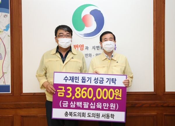 [무한뉴스] 충북도의회 서동학 의원이 지난 13일 집중호우로 피해를 입은 지역의 수재민 구호를 위해 의정활동비 386만원을 수재민 돕기 성금으로 기탁했다.