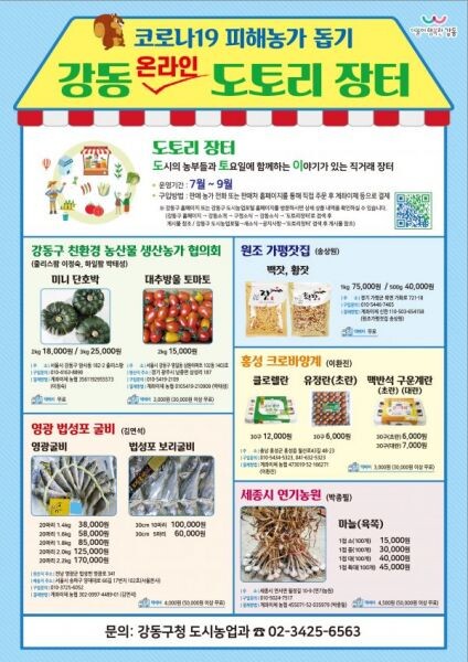 [무한뉴스] 강동구는 지난 7월부터 오는 9월까지 신종 코로나바이러스 감염증으로 어려움을 겪고 있는 농가를 돕고 소비자에게 우수한 먹거리를 제공하기 위해 농산물 직거래장터인 ‘온라인 강동 도토리장터’를 개최한다.