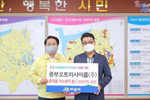 [무한뉴스] 중부오토리사이클는 집중호우피해 이재민 등을 위해 지난 13일 아산시에 구호물품을 전달했다.