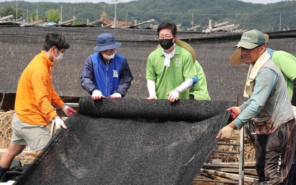 양 지사는 이들과 함께 이날 오전 9시 30분부터 12시까지 물에 잠겨 훼손된 인삼 시설 철거 작업을 진행하며 구슬땀을 흘렸다.