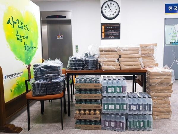 지난 13일 최순재 회장을 비롯한 회원들은 점심은 수해복구에 힘쓰고 있는 자원봉사자 등 100여명에게 약채락 도시락을 대접하고 저녁에는 제천에 파견 나와 있는 특전사 흑표부대 특전장병들을 찾아가 삶은 옥수수 300개와 사과즙 600개를 전달했다.