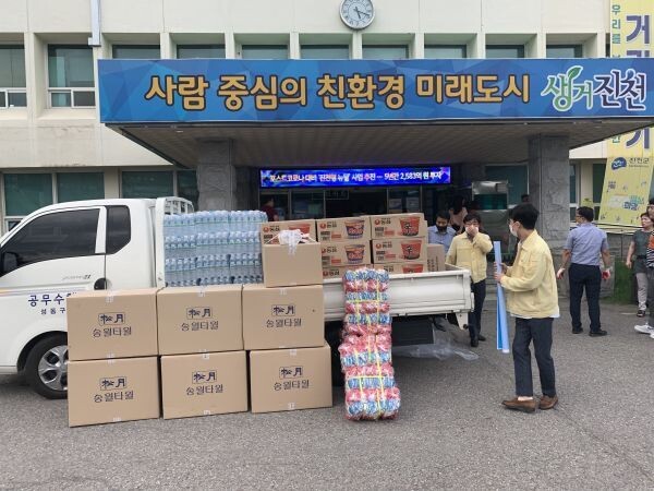 [무한뉴스] 서울 성동구는 수해로 고충을 겪고 있는 자매도시 충북 진천군에 생수, 타월, 식료품 등 500만원 상당의 구호물품을 긴급 지원했다고 밝혔다.