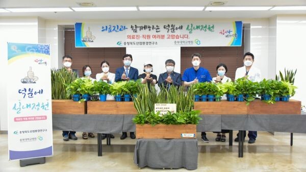 충북도 산림환경연구소는 도내 의료기관 3개소에서 코로나19 극복과 국민의 건강과 안전을 위해 헌신하고 있는 의료진과 직원들의 마음방역을 위한 ‘덕분에 실내정원’ 행사를 진행한다고 밝혔다.