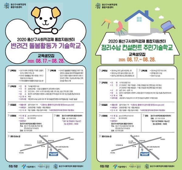 [무한뉴스] 서울 용산구 사회적경제통합지원센터가 반려견 돌봄활동가, 정리수납 컨설턴트 등 ‘주민기술학교’ 운영을 시작으로 3개년에 걸쳐 지역관리기업 육성에 나선다.