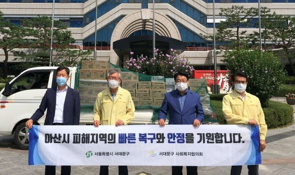 먼저 이달 18일에는 서대문구사회복지협의회로부터 후원받은 500만원 상당의 생필품을 특별재난지역으로 선포된 아산시에 지원함으로써 침수피해로 당장의 생활이 어려워진 이재민들의 수해 복구에 힘을 보탰다.