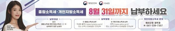 예산군, "종합·개인지방소득세 8월 31일까지 납부하세요!"