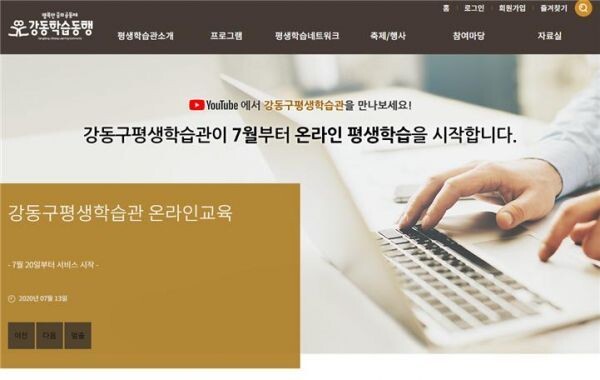 온라인 평생학습은 ‘강동구평생학습관 홈페이지’에서 교육신청을 한 주민을 대상으로 진행된다.
