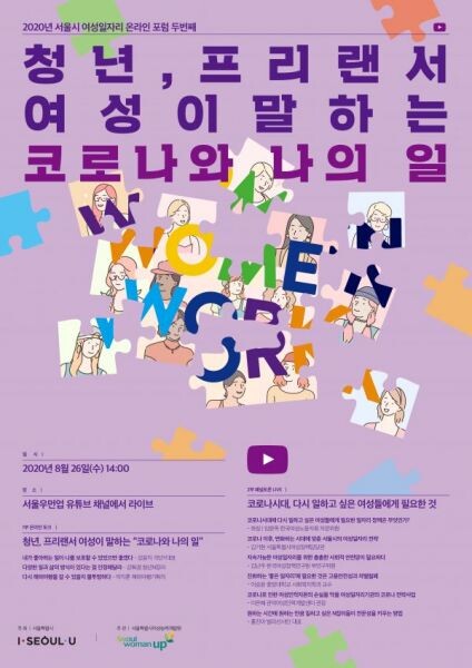 [무한뉴스] 서울시 주최, 서울시여성능력개발원 주관 ‘2020년 서울시 여성일자리 온라인포럼 두번째’가 8월 26일 오후 2시, 유튜브 ‘서울우먼업’ 채널에서 라이브로 개최된다.
