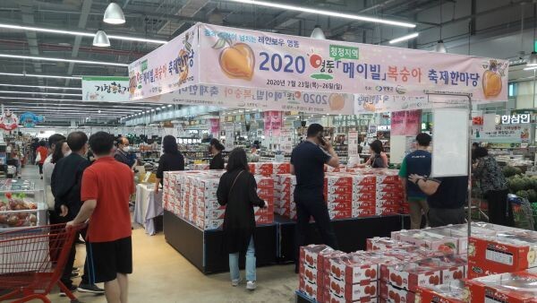 20일 군에 따르면 군은 지난달 23일부터 26일까지 농협하나로클럽 울산점과 광주점, 성남점에서 ‘2020 영동과일 한마당축제 할인행사’를 연데 이어 농협하나로유통 성남점에서 이달 20일부터 23일까지 4일간 2차 판촉행사를 열고 있다.