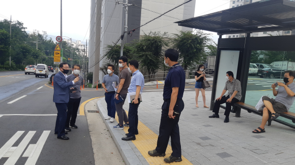 박 의원은 이어 ”버스정류장 문제와는 별도로 골든포레 아파트 정문 쪽으로 통행하는 주민 차량의 동선이 기하학적인 불편함이 있어 신호체계를 조정하고 부지를 확보하면 개선이 가능할 것 같다“고 말하며 차후 해결해야 하는 과제로 제안했다.