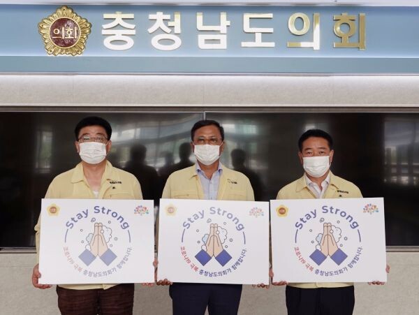 [무한뉴스] 충남도의회 안전건설소방위원회 소속 이계양 위원장과 지정근·전익현 의원은 21일 신종 코로나바이러스 감염증 위기 극복을 위한 스테이 스트롱 캠페인에 동참했다.