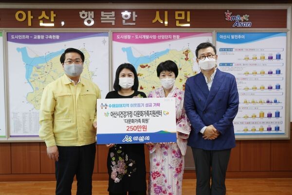 [무한뉴스] 아산시건강가정·다문화가족지원센터 다문화가족 회원일동이 이번 폭우 피해로 어려움을 겪는 이웃들을 위해 지난 21일 아산시에 후원금 250만원을 전달했다.