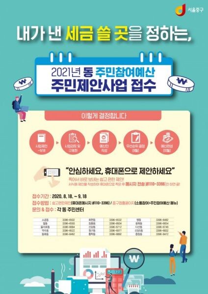 [무한뉴스] 중구가 2021년도 동주민센터 예산 편성을 위한 동 주민참여예산 주민제안사업 접수를 시작했다.