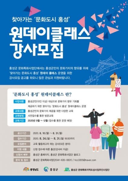 ‘문화도시 홍성’원데이클래스 강사, 오는 8월 24일부터 31일까지 접수