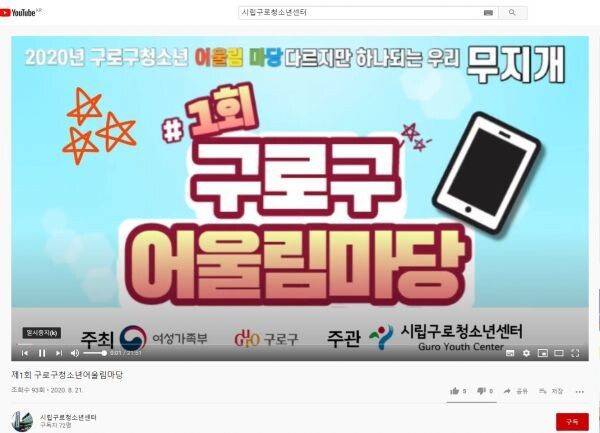 개막식 영상은 시립구로청소년센터 유튜브 채널을 통해 확인할 수 있다.