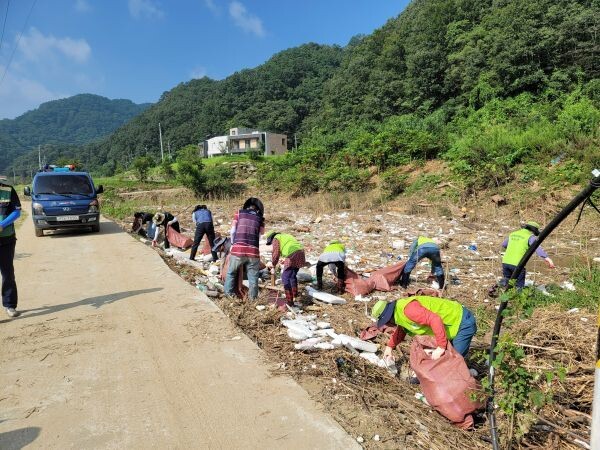 [무한뉴스] 옥천군자연보호협의회는 25일 동이면 청마리에 발생한 수해쓰레기 수거활동을 했다.