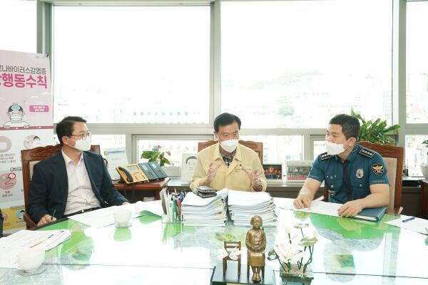 [무한뉴스] 서울시 성북구청과 성북경찰서 종암경찰서는 지난 8월 25일 이승로 성북구청장을 비롯해 최성규 성북경찰서장, 박규남 종암경찰서장과 관계공무원들이 참석한 회의를 통해 집단감염이 발생하고 있는 코로나19의 추가 확산 방지를 위한 적극적인 지원을 결의하는 자리를 가졌다고 밝혔다.