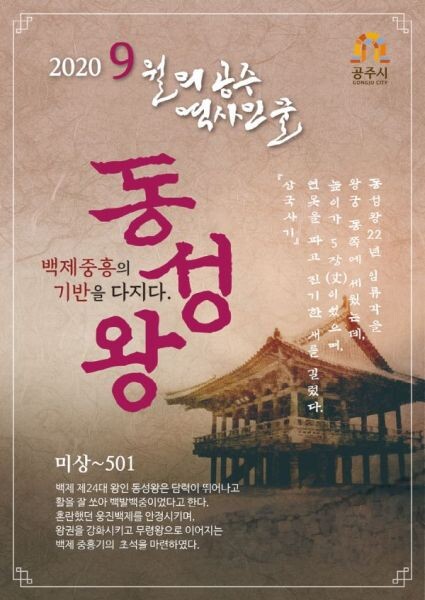 [무한뉴스] 공주시는 9월 이달의 역사인물로 백제 중흥의 기반을 다진 백제 제24대왕 ‘동성왕’을 선정했다.