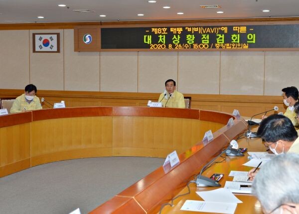 [무한뉴스]충주시는 26일 오후 3시 중앙탑회의실에서 제8호 태풍 ‘바비’ 북상에 따른 긴급 점검회의를 개최하고 대비태세 만전에 집중하고 있다.