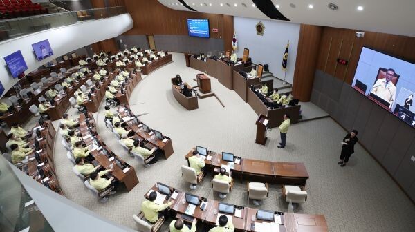 한편 도의회는 의회청사 출입로를 지하 1층 한 곳만 개방해 상시근무자를 투입, 열화상 카메라로 출입자 이상 유무를 확인하고 회의장 내 비말차단용 투명 가림막 설치, 주기적 소독 등 감염병 확산 방지에 주력하고 있다.