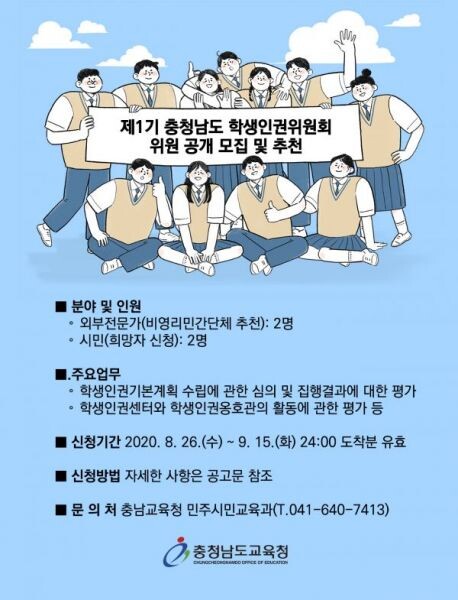 위원회는 지난 7월 제정된 ‘충청남도학생인권조례’에 따라 구성하는 것이다.